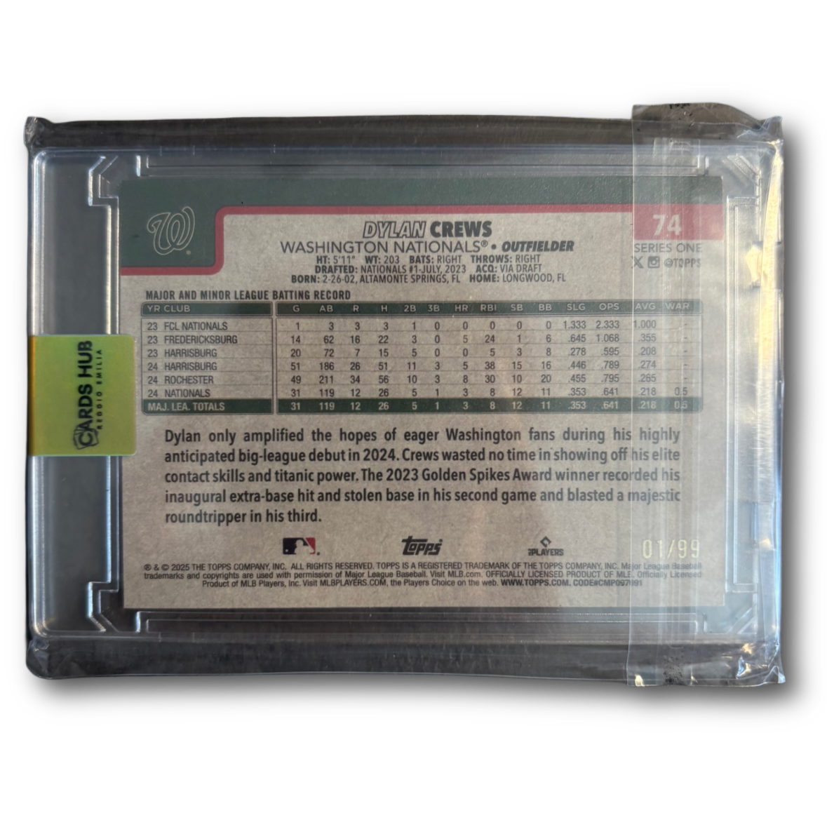 DYLAN CREWS - 2025 Topps Baseball Series One /99 RC Vintage SSP