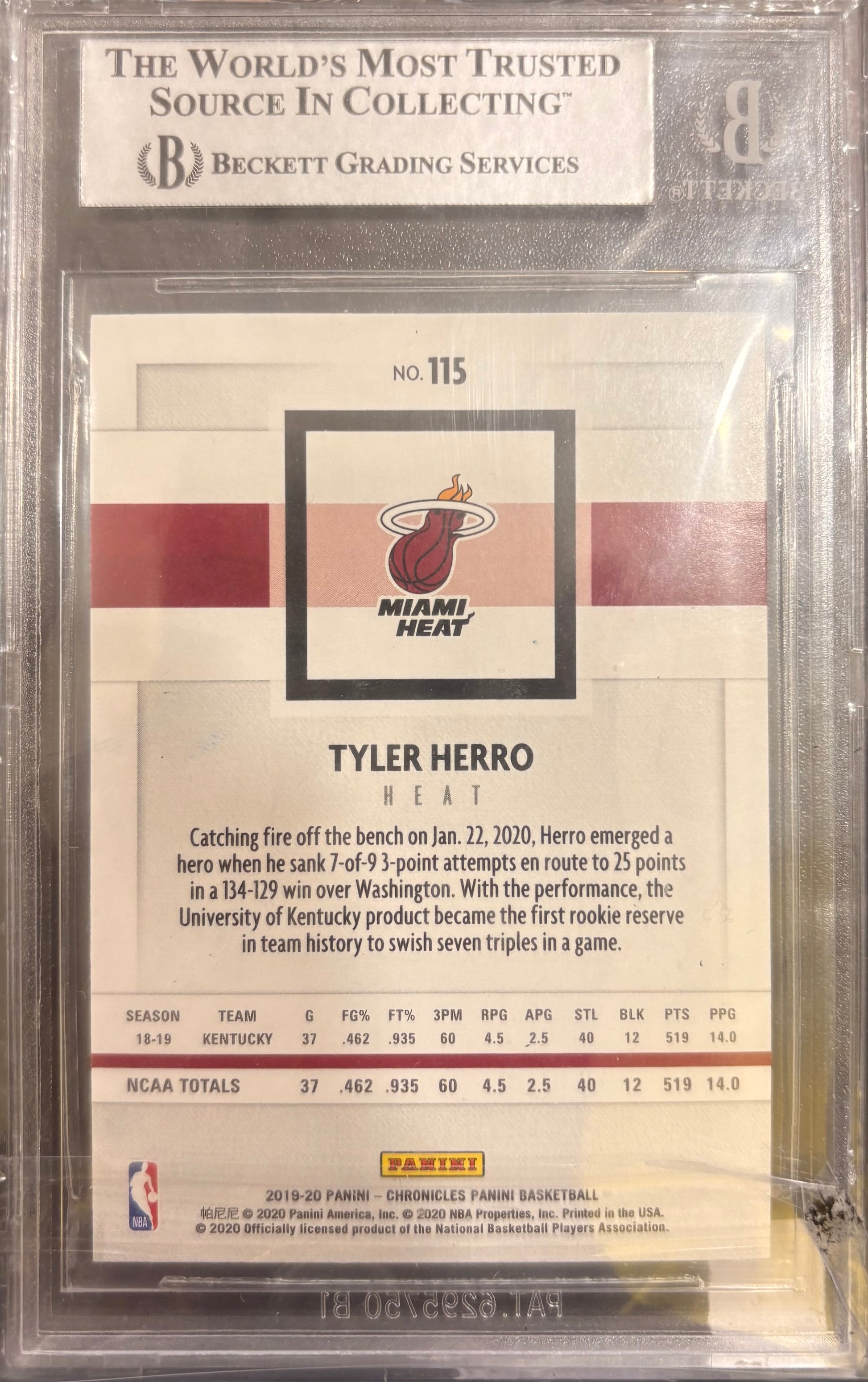 HERRO - 2019/20 Panini Chronicles RC BGS Authentic Auto