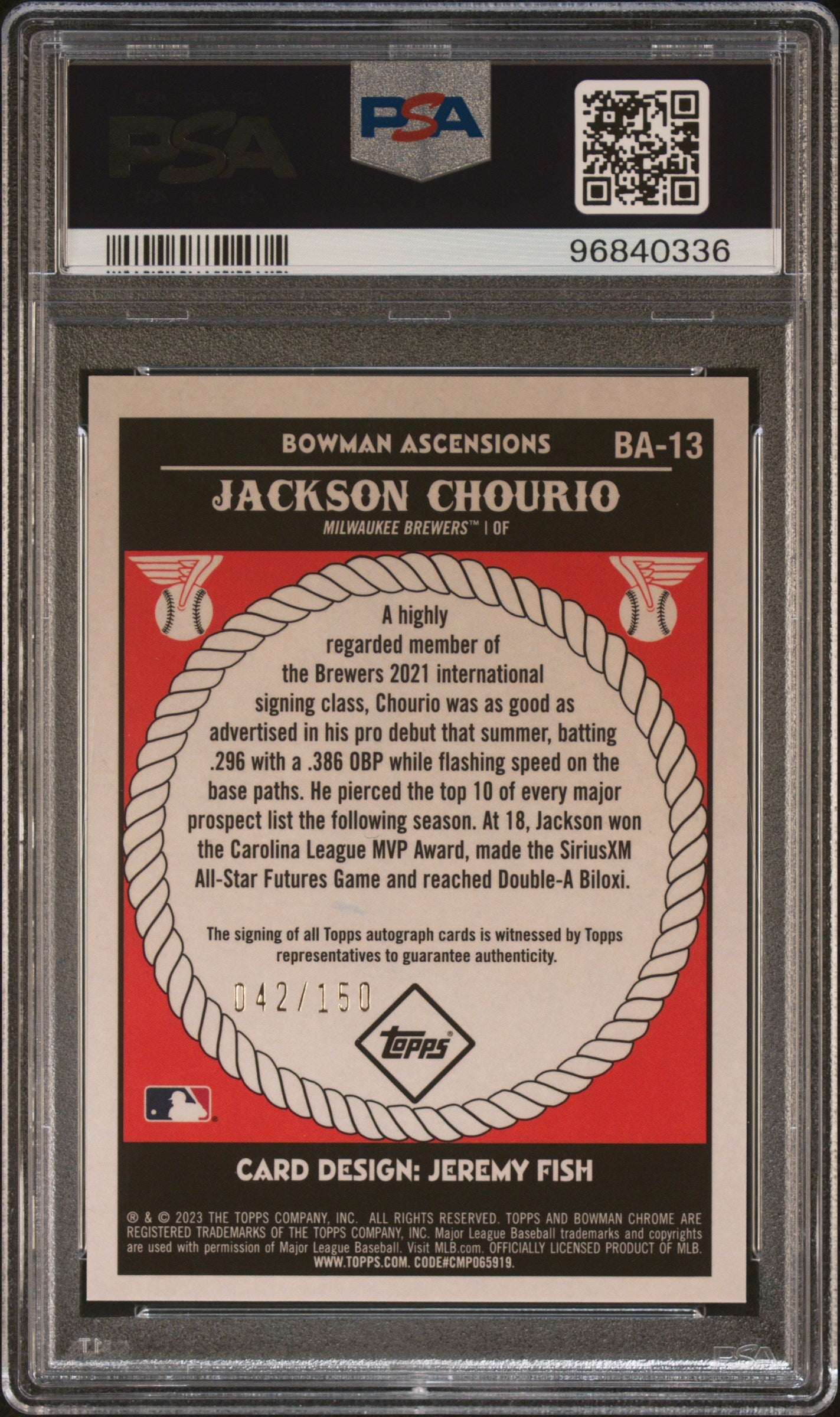 JACKSON CHOURIO - 2023 Bowman Chrome Ascensions /150 Auto PSA 9
