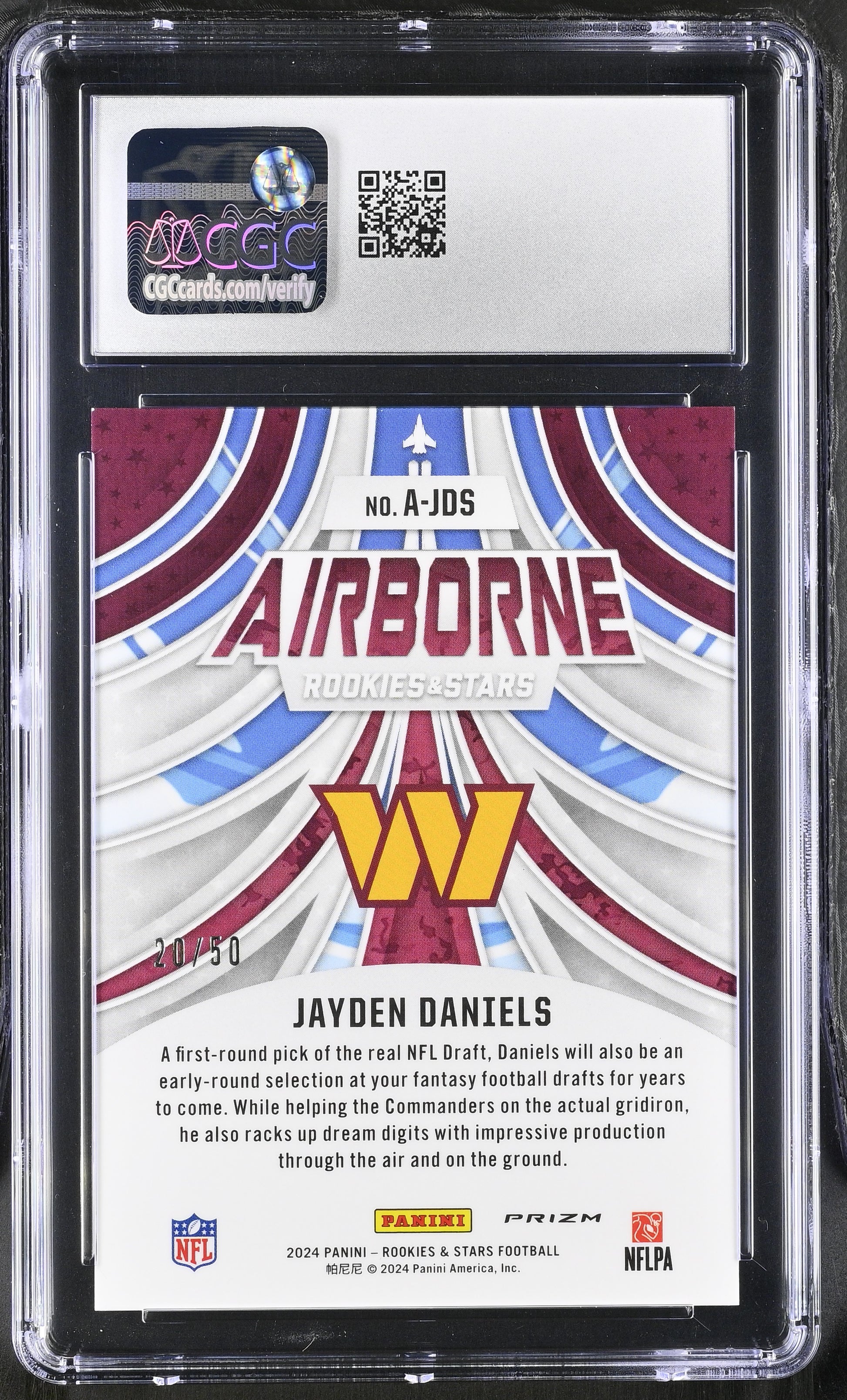 JAYDEN DANIELS - 2024 Rookies & Stars Airborne Blue /50 RC CGC 9