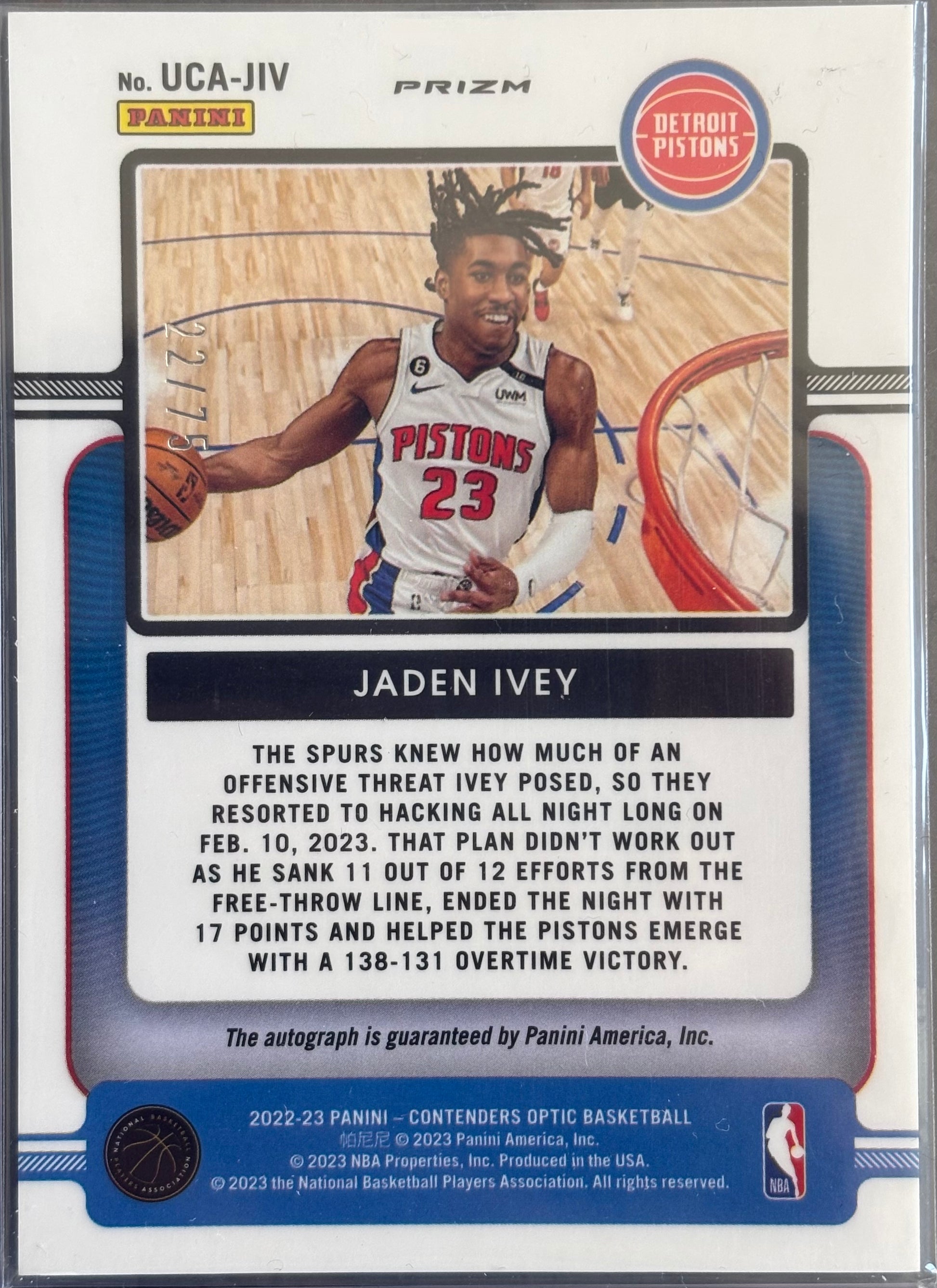 JAYDEN IVEY - 2022/23 Contenders Optic Auto /75 RC
