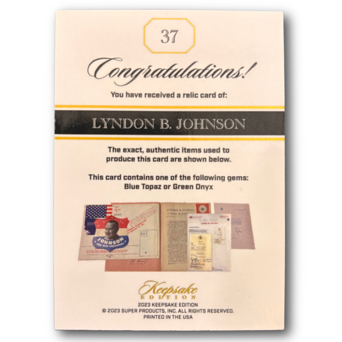 LYNDON B. JOHNSON - 2023 POTP Keepsake Gem Relic /50